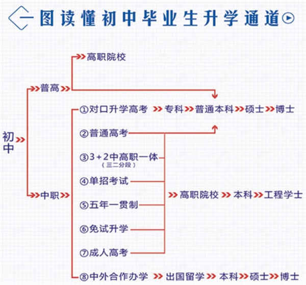 初中畢業(yè):高中50%+中職50%