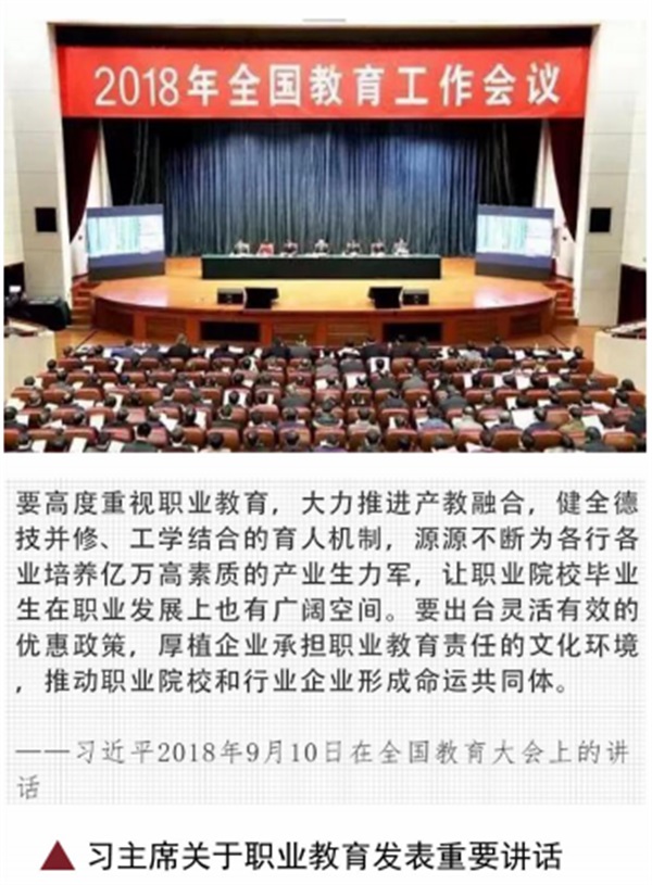 2017年10月18日,習(xí)近平總書記在黨的十九大報(bào)告中明確指出:產(chǎn)教融合、校企一體的辦學(xué)模式為當(dāng)前職業(yè)學(xué)校開辟了一條新的發(fā)展之路。有利于激發(fā)學(xué)生的創(chuàng)造力、創(chuàng)新力,并為學(xué)生工讀結(jié)合、勤工儉學(xué)創(chuàng)造條件,能有效的解決社會(huì)人才供給側(cè)與產(chǎn)業(yè)需求側(cè)之間的矛盾,提高學(xué)生的就業(yè)率及就業(yè)質(zhì)量。