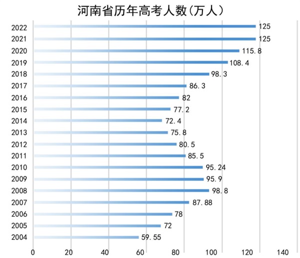 從歷年高考報(bào)考數(shù)據(jù)來看,2022年河南省普通高考報(bào)名人數(shù)達(dá)到125萬,普通高考升學(xué)壓力巨大。而通過中職升學(xué)進(jìn)入大學(xué)校門,則是另外一種實(shí)現(xiàn)大學(xué)夢(mèng)的途徑。
