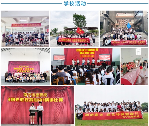 學(xué)校位于南寧市安武大道26號(hào),職業(yè)教育辦學(xué)已有三十多年,校園文化氣息濃郁,學(xué)生社團(tuán)活動(dòng)多樣。學(xué)校堅(jiān)持“辦讓人民滿意的職業(yè)教育,辦對(duì)社會(huì)負(fù)責(zé)的職業(yè)學(xué)校”,讓學(xué)生“就業(yè)有能力、升學(xué)有優(yōu)勢(shì)、發(fā)展有通道”。王牌專(zhuān)業(yè)有“新能源汽車(chē)運(yùn)用與維修”“交通運(yùn)營(yíng)服務(wù)“汽車(chē)服務(wù)與營(yíng)銷(xiāo)”,學(xué)校擁有強(qiáng)大的實(shí)訓(xùn)師資力量(廣西運(yùn)德集團(tuán)派駐高級(jí)工程師、高級(jí)技師任教)和專(zhuān)業(yè)的實(shí)訓(xùn)車(chē)間,讓學(xué)生“教學(xué)即上崗,上崗即就業(yè)”無(wú)縫銜接。